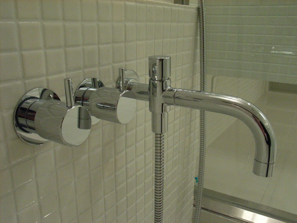 これ、私の自宅写真です。自宅の浴室はユニットバスは嫌いなので、在来浴室に25ミリ角のモザイクタイルを採用しました。目地のカビが心配だったので、カビに有効なのはあらかじめ蝋燭のロウを目地に刷り込むと良いというアドバイスを受けたので、全ての目地にロウを塗り込みました。死ぬほど大変だった記憶があります。
