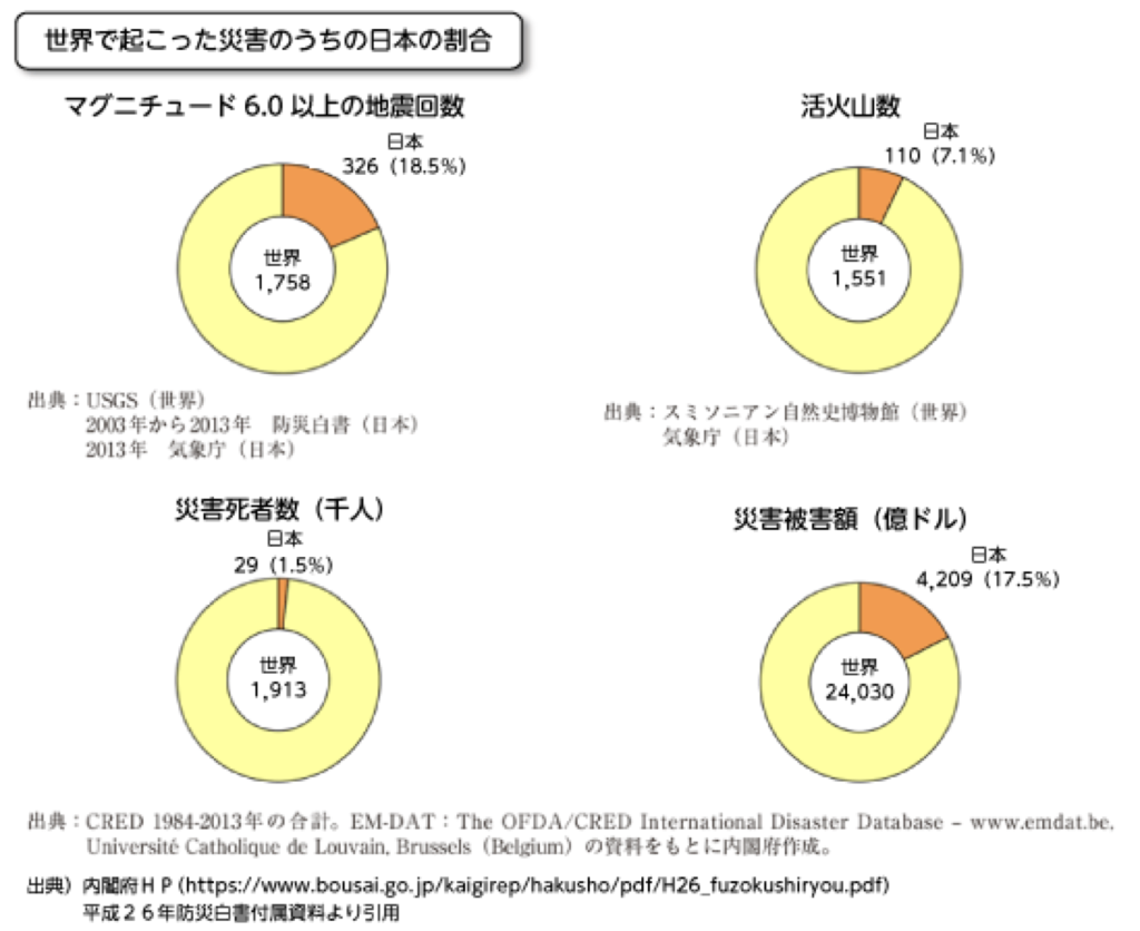 こんなに自然災害が多い国って世界にどれだけあるか知ってますか?日本の国土面積は世界のたった0.29%しかありません。それなのにこれだけの自然災害が起こっています。