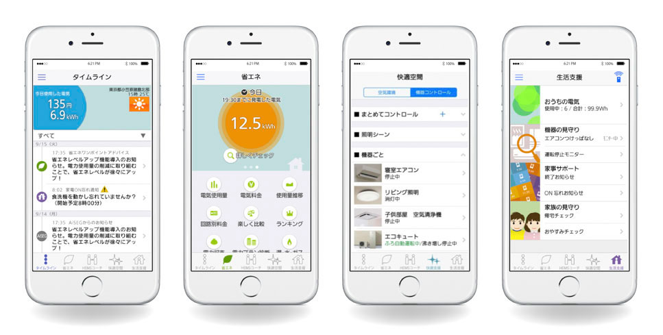 インターネット回線を利用して、住宅に接続している太陽光、蓄電池、電気メーター、照明器具、エアコン、給湯器、電気自動車といった電気を動力源とする機器の使用状況を常に監視し(見える化)、節電に繋げる家庭内ネットワークです。